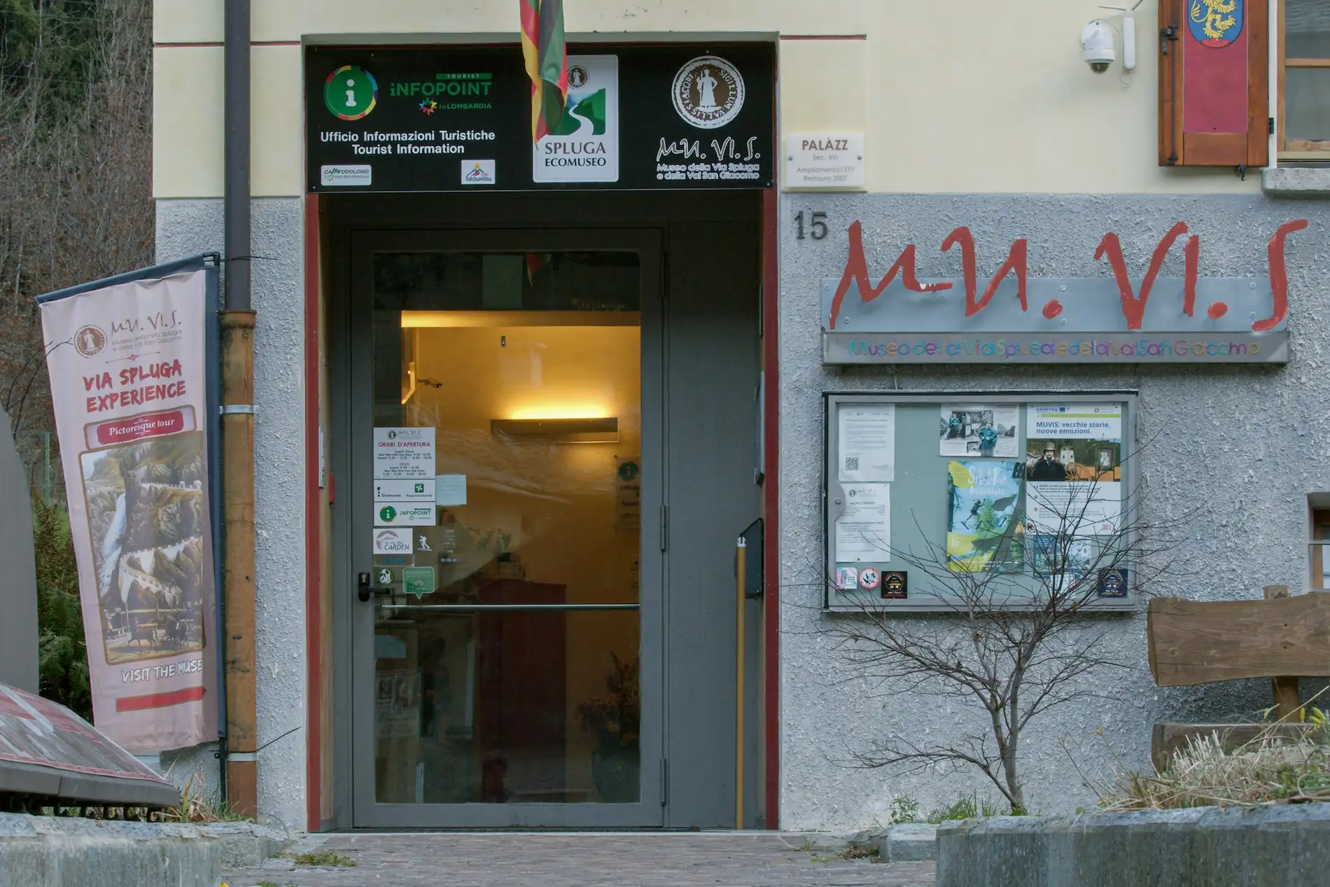 Una locanda del tardo XVI secolo, ristrutturata ed ampliata nella seconda metà del Settecento dall’abate Antonio Foppoli di Mazzo di Valtellina, costituisce il nucleo originario dell’edificio che oggi ospita il “Museo della Via Spluga e della Val San Giacomo” (Mu.Vi.S.).